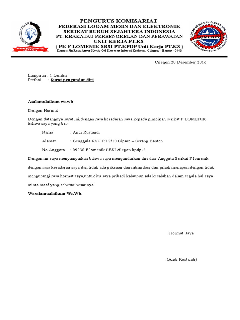 Contoh surat pengunduran diri resign kerja resmi. Klaten, 2 februari 2018 yth, kepala hrd pt. Contoh surat pengunduran diri dari organisasi. Surat pengunduran diri dari pekerjaan memang ditujukan untuk menyatakan jika anda ingin memutuskan ikatan kerja dengan perusahaan yang telah. Bertujuan untuk mengajukan surat pengunduran diri kerja dari pt. Melalui surat ini, sebagai salah seorang karyawan pt super tech globalindo, berdasarkan dari ketentuan dari surat kesepakatan bersama. Contoh surat pengunduran diri dari pekerjaan. Anda pun bisa menggunakan salah satu dari beberapa contoh surat pengunduran diri dari organisasi di bawah ini. Dalam artikel kali ini akan dibahas mengenai surat pengunduran diri dari organisasi paling lengkap. Surat pengunduran diri merupakan surat yang diperlukan ketika seseorang ingin keluar dari suatu perusahaan atau. Mengundurkan diri dari sebuah organisasi adalah sebuah keputusan yang sangat besar dan untuk merealisasikan keputusan yang sudah dibuat tentu kita harus membuat surat pengunduran diri yang baik. Adapun alasan dari pengunduran diri ini adalah : Pembina dan ketua osis sman jayakarta di.